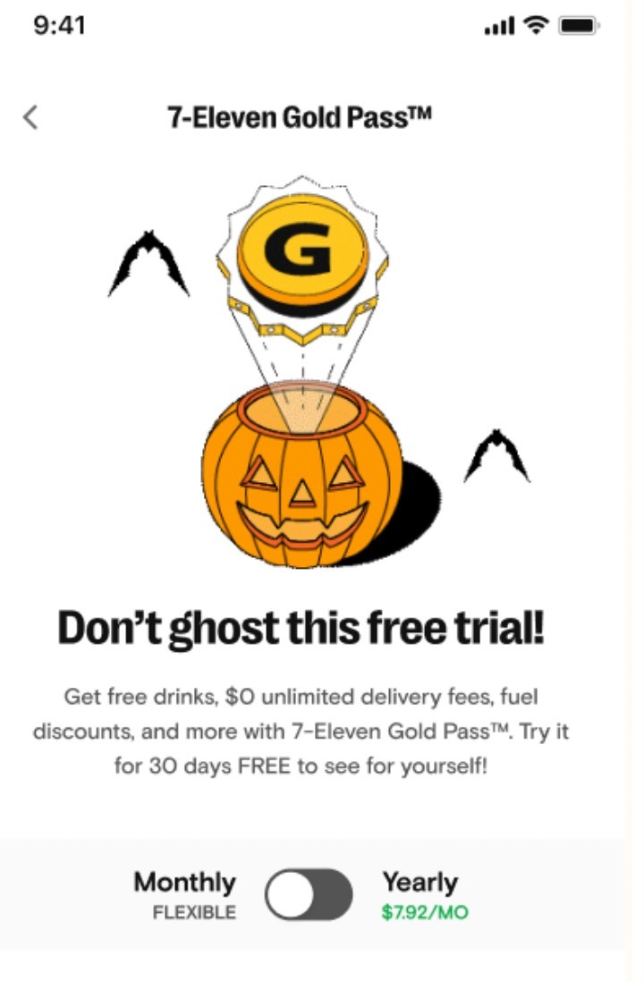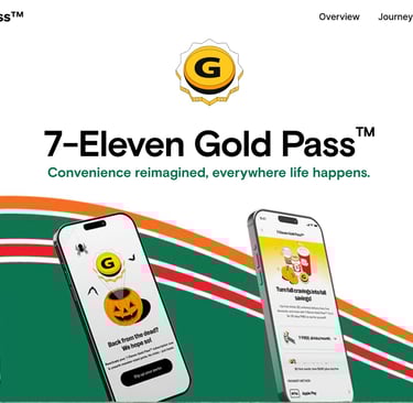7-Eleven Gold Pass™ is one of the biggest revenue drivers for 7-Eleven's digital space. I've worked on all of their campaigns, the subscription flow from beginning to end, seasonal campaigns, and more. I work closely with the UX Research team to A/B test different variations of content, so we're putting the clearest and most enticing content in front of customers. 7-Eleven Gold Pass™ was recently nominated for a Webby Award in two different categories.