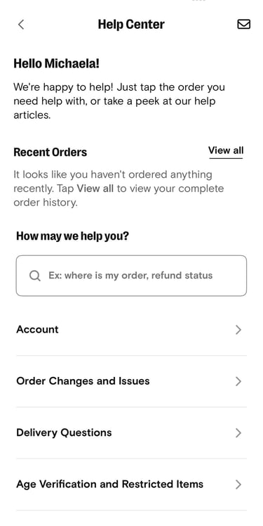 I'm still working closely with the Help Center Product Manager, Designer, Researcher, and Developers to ensure the redesign keeps the flow clear, uncluttered, and easy for customers. We've already implemented some of the changes, adding in personalization, a seamless flow to request a refund for a recent order, and a simple entry point to the rest of the FAQs.