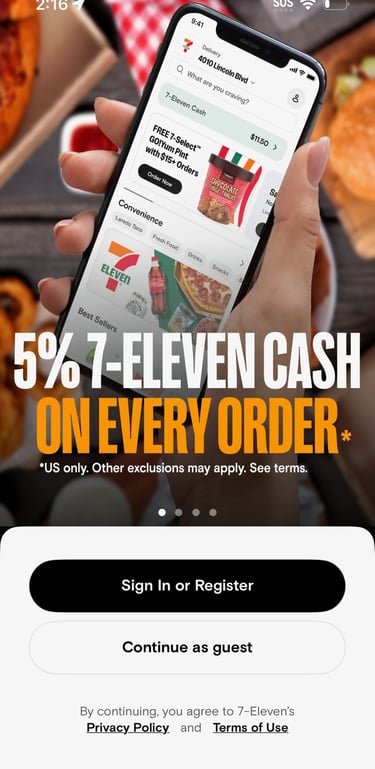 Create enticing promotional content & clear UX content for 7NOW, 7-Eleven's delivery app.