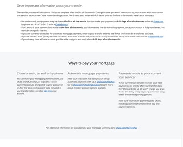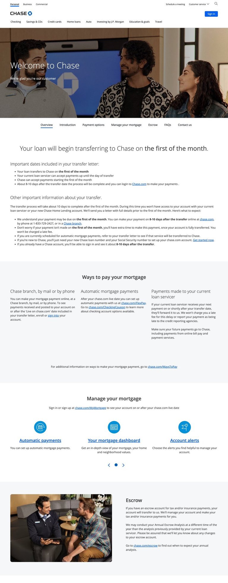 Overhauled the customer-facing content for home loan customers whose mortgage was purchased by Chase.
